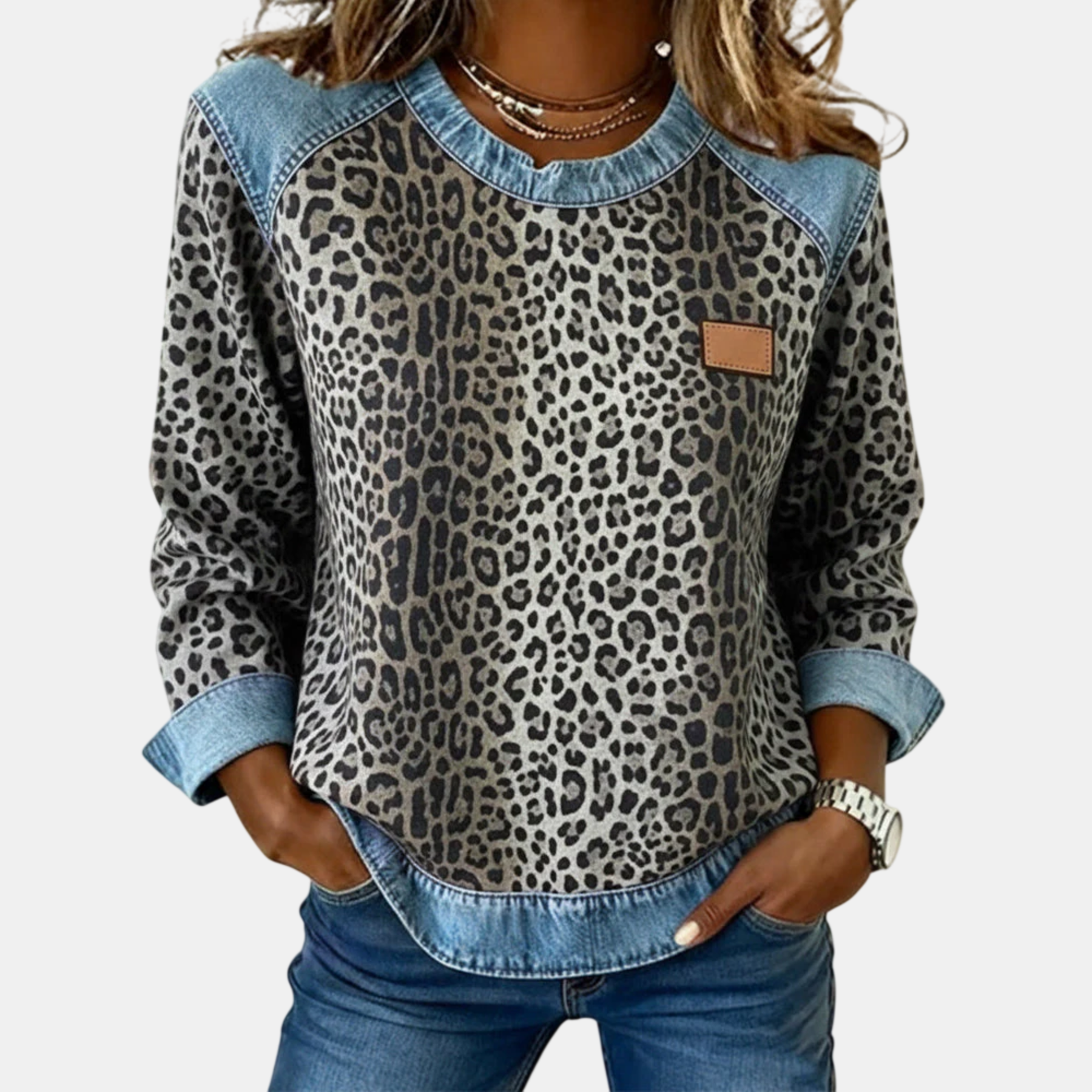 O mintás állatmotívum, intenzív és kifinomult megjelenésével személyiséget és magabiztosságot sugároz, míg a denim részletek elegáns és kortárs kontrasztot teremtenek, finom exkluzivitással emelve a darabot.